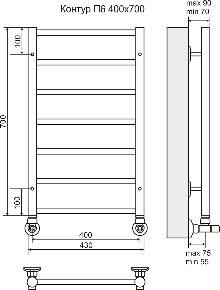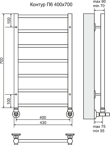 Полотенцесушитель электрический Terminus Контур Контур П6 400х700 электрический KTX 300W (скрытый)