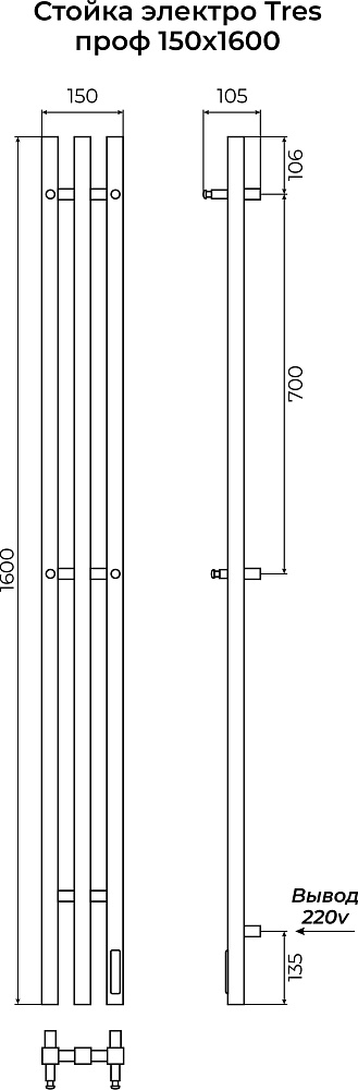 Полотенцесушитель электрический Terminus Tres 4670078575517 купить по доступной цене