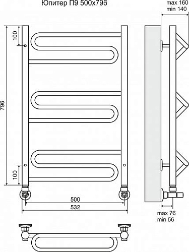 Полотенцесушитель электрический Terminus ЮПИТЕР Юпитер П9
