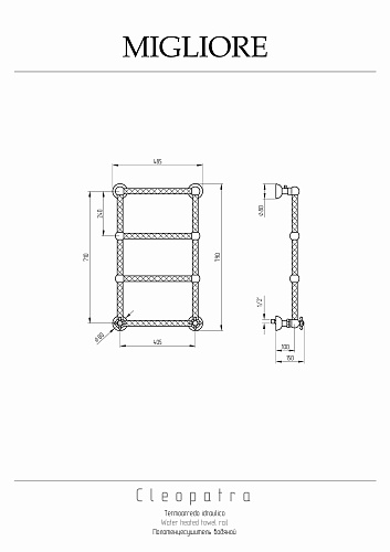 Полотенцесушитель Migliore 25841 Cleopatra водяной, 710/790х410/490 мм, золото