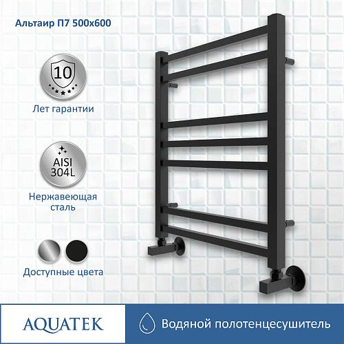 Полотенцесушитель водяной Aquatek AQ KK0760BL Альтаир П7 50х60 см, подключение нижнее/диагональное, черный муар