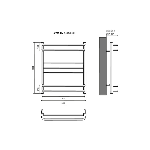 Полотенцесушитель водяной Aquatek AQ KRC0760BL Бетта П7 50х60 см, подключение нижнее/диагональное, черный муар
