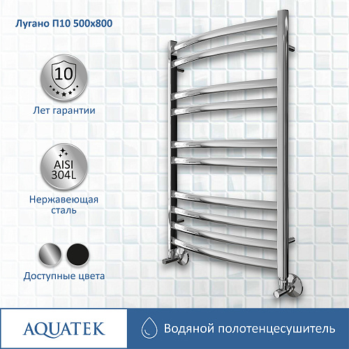 Полотенцесушитель водяной Aquatek AQ DOC1080CH Лугано П10 50х80 см, подключение нижнее/диагональное, хром