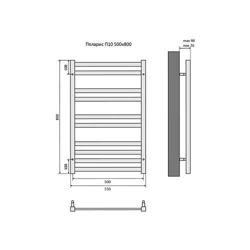 Полотенцесушитель водяной Aquatek AQ KO1080BL Поларис П10 50х80 см, подключение нижнее/диагональное, черный муар