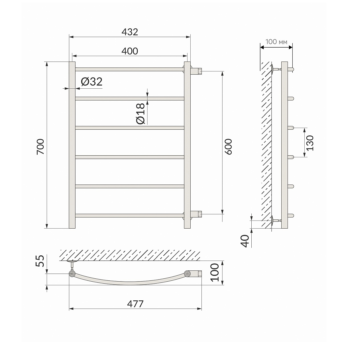 Полотенцесушитель водяной INDIGO Arc с боковым подключением в размере 700х400 (ВхШ) выполнен из нержавеющей стали. Идеально подходит для любой ванной комнаты, обеспечивая качественную сушку текстиля, а также обогрев помещения. Конструкция "лесенка" с несколькими перекладинами позволяет разместить большое количество полотенец, обеспечивая их быстрое высыхание. Стильный графитовый оттенок с металлическим блеском станет акцентом в интерьере. Боковое подключение к трубам системы отопления. Фитинги для других типов подключения приобретаются отдельно. Нержавеющая сталь гарантирует долговечность и устойчивость к коррозии, обеспечивая безупречный внешний вид полотенцесушителя на долгие годы. Этот водяной полотенцесушитель – оптимальное сочетание функциональности, надежности и современного дизайна. Все изделия российского бренда INDIGO застрахованы и имеют гарантию 5 лет.