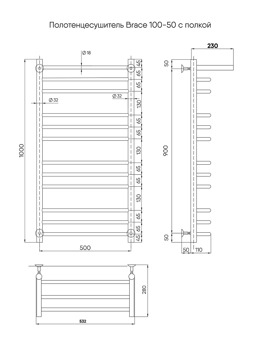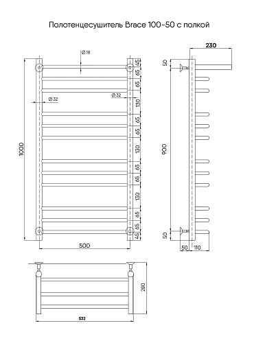Полотенцесушитель водяной INDIGO Brace с полкой в размере 1000х500 (ВхШ) обеспечивает быстрый и равномерный нагрев полотенец. За счёт своей формы, этот полотенцесушитель лесенка считается одним из самых вместительных. Выгнутые скобообразные перекладины не только придают полотенцесушителю стильный внешний вид, но и обеспечивают удобное размещение большого количества полотенец и белья. Наличие полочки создаёт ещё больше пространства для размещения банных пренадлежностей. Модель в золотом цвете станет элегантным дополнением интерьера вашей ванной комнаты. Полотенцесушитель лесенка, выполненный из нержавеющей стали, обеспечит эффективный обогрев и прослужит долгие годы. Нержавеющая сталь гарантирует долговечность и устойчивость к коррозии. В комплектацию входит изделие, гарантийный талон, держатель 2 шт., колпачок декоративный 2 шт., кран Маевского 2 шт., муфта с поворотным кольцом 2 шт., уплотнительное кольцо 2 шт., гайка накидная 2 шт, угловые фитинги. Вся продукция ТМ INDIGO застрахована и имеет гарантию.