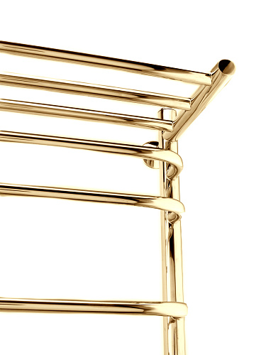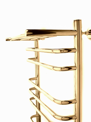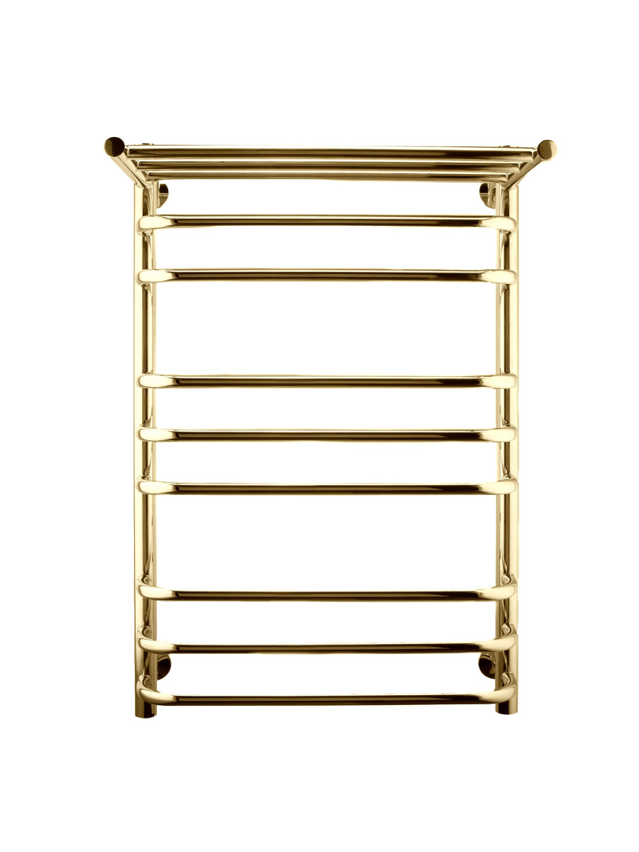 Полотенцесушитель водяной INDIGO Brace с полкой 800х500 (ВхШ) обеспечивает быстрый и равномерный нагрев полотенец. За счёт своей формы, этот полотенцесушитель лесенка считается одним из самых вместительных. Выгнутые скобообразные перекладины не только придают полотенцесушителю стильный внешний вид, но и обеспечивают удобное размещение большого количества полотенец и белья. Наличие полочки создаёт ещё больше пространства для размещения банных пренадлежностей. Модель в золотом цвете станет элегантным дополнением интерьера вашей ванной комнаты. Полотенцесушитель лесенка, выполненный из нержавеющей стали, обеспечит эффективный обогрев и прослужит долгие годы. Нержавеющая сталь гарантирует долговечность и устойчивость к коррозии. В комплектацию входит изделие, гарантийный талон, держатель 2 шт., колпачок декоративный 2 шт., кран Маевского 2 шт., муфта с поворотным кольцом 2 шт., уплотнительное кольцо 2 шт., гайка накидная 2 шт, угловые фитинги. Вся продукция ТМ INDIGO застрахована и имеет гарантию.
