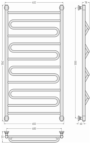 Полотенцесушитель водяной Сунержа 00-0205-1260 Элегия+ 1200х600 мм, без покрытия