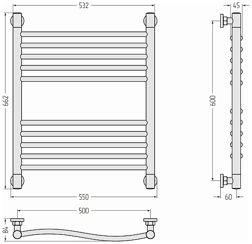 Полотенцесушитель водяной Сунержа 00-0222-6050 Флюид+ 600х500 мм, без покрытия