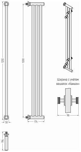 Полотенцесушитель водяной Сунержа 00-4124-1200 Хорда 1200х195 мм, без покрытия