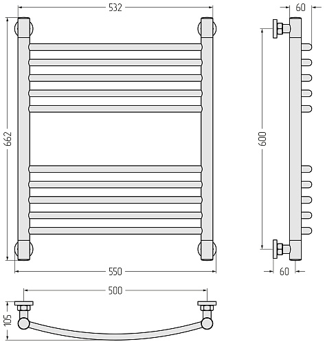 Полотенцесушитель водяной Сунержа 012-0221-6050 Богема+ 600х500 мм, графит купить по доступной цене