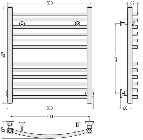 Полотенцесушитель водяной Сунержа 022-0251-6050 Аркус 600х500 мм, матовая шампань купить по доступной цене