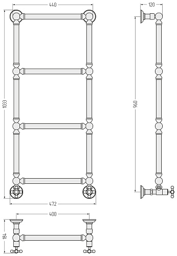 Полотенцесушитель водяной Сунержа 05-0280-9640 Ренессанс 960х400 мм, состаренная бронза
