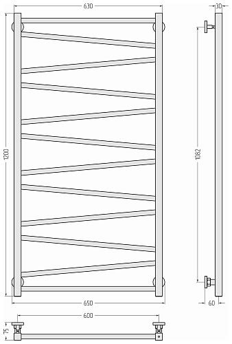 Полотенцесушитель водяной Сунержа 30-0253-1260 Сирокко 1200х600 мм, матовый белый купить по доступной цене