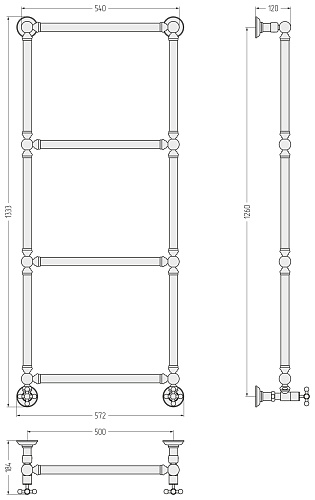 Полотенцесушитель водяной Сунержа 30-0280-1250 Ренессанс 1260х500 мм, матовый белый