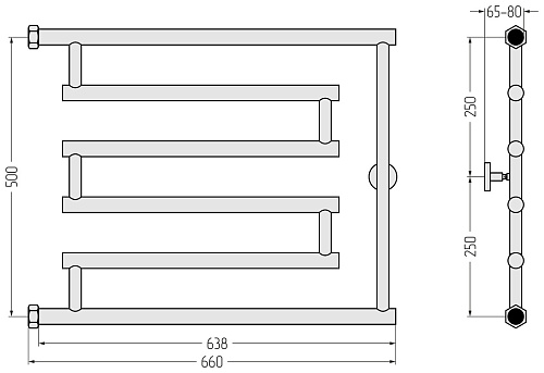 Полотенцесушитель водяной Сунержа 30-4052-5065 High-Tech Model L+, 500х650 мм, матовый белый
