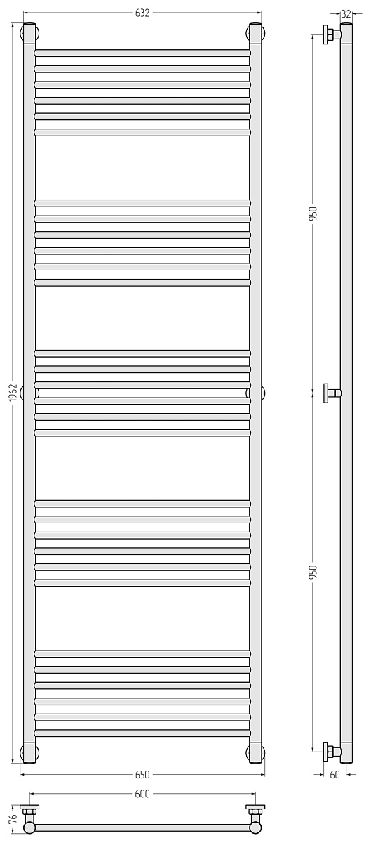 Полотенцесушитель водяной Сунержа 31-0220-1960 Богема+ прямая 1900х600 мм, матовый черный