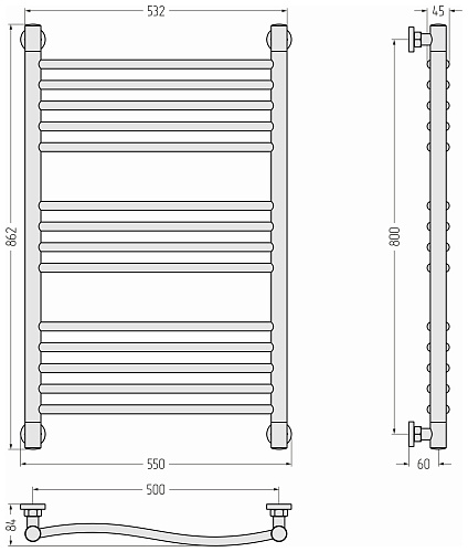 Полотенцесушитель водяной Сунержа 31-0222-8050 Флюид+ 800х500 мм, матовый черный