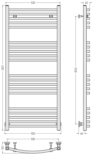 Полотенцесушитель водяной Сунержа 31-0251-1250 Аркус 1200х500 мм, матовый черный