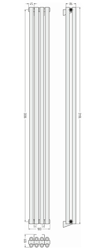 Полотенцесушитель водяной Сунержа ЭСТЕТ-00 н,ж 1800х180 , 4 сек (Без покрытия) 00-0332-1804