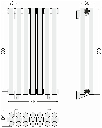 Полотенцесушитель водяной Сунержа ЭСТЕТ-11 н,ж 500х315 , 7 сек (Без покрытия) 00-0302-5007