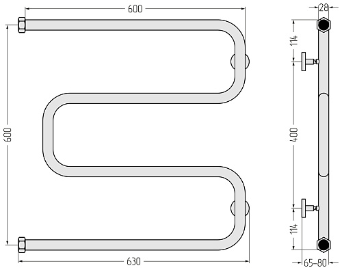 Полотенцесушитель водяной Сунержа Ш-образный+ 31-4014-6060