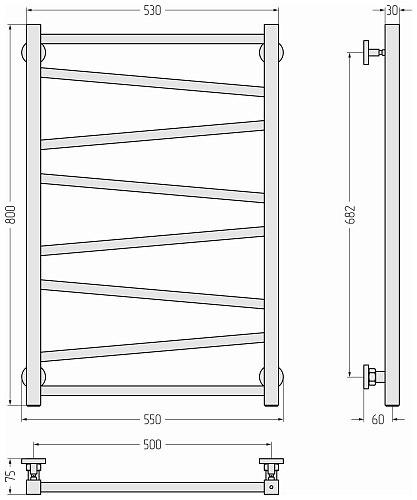 Водяной полотенцесушитель Сирокко 800х500 Сунержа, 00-0253-8050, ХРОМ (без покрытия). Межосевое расстояние: - нижнее подключение X (мм) 500, Внешние габариты (высота х ширина х глубина) (мм) 807х550х74,7, Подключение Нижнее, Материал Нержавеющая сталь AISI 304 L (04X18H10), Рабочее давление от 3 до 15 атм, Давление испытаний 60 атм, Температура теплоносителя до 105°С, Масса (кг) 6.50,
