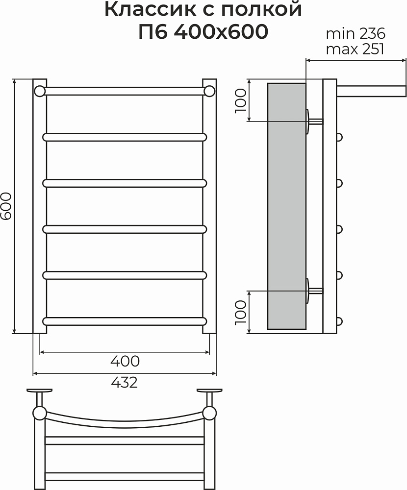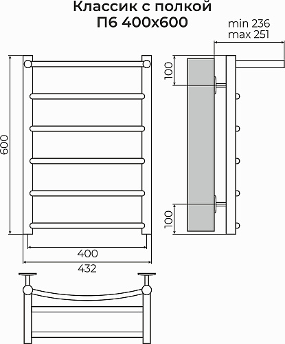 Полотенцесушитель водяной Terminus КЛАССИК С ПОЛКОЙ 4670078556707