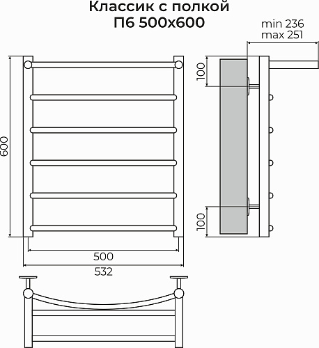 Полотенцесушитель водяной Terminus КЛАССИК С ПОЛКОЙ 4670078556752
