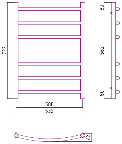 Полотенцесушитель водяной Сунержа "Галант-ПРОФИ" 800х500 (Без покрытия) 00-5100-8050