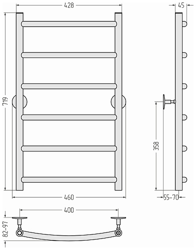 Полотенцесушитель водяной Сунержа СТИЛЬЕ "Универсал-50" 800х400 (6) Г 21 (Без покрытия) 00650-8040