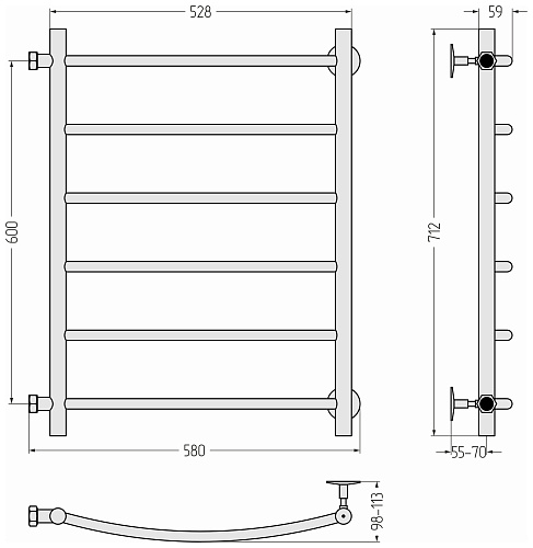 Полотенцесушитель водяной Сунержа СТИЛЬЕ "Версия-Б2" 600х500 (6) Г 18 (Без покрытия) 00612-6050