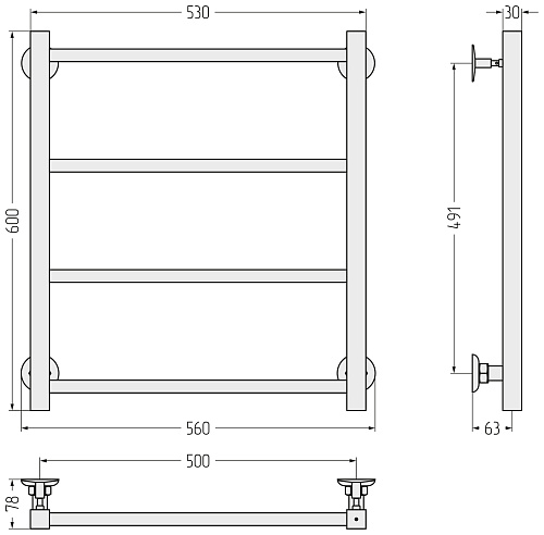 Полотенцесушитель водяной Сунержа СТИЛЬЕ "Версия-КН" 600х500 (4) П 20х20 (Без покрытия) 00640-6050