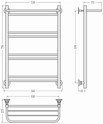 Полотенцесушитель водяной Сунержа СТИЛЬЕ "Версия-Н1" 800х500 (ПОЛКА Сунержа+1+2+2+2) П 16 (Без покрытия) 00621-8050