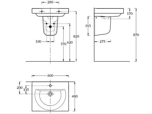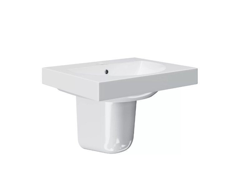 Подвесной полупьедестал PRO позволяет скрыть сифон и технические отверстия при установке раковины BUONGIORNO шириной 55 до 60 см без мебели и раковины PRO шириной 50 см. Такое решение подойдёт для гостевых санузлов, а также для проектного использования.