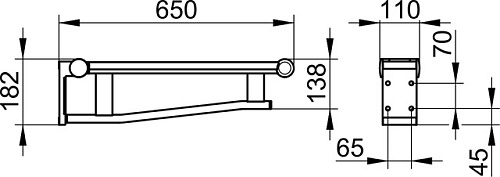 Откидывается наверх, исполнение с ограничением хода верх поручня, имеет пластиковую оболочку.