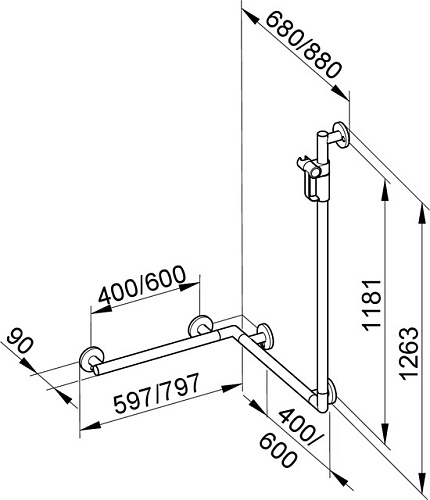 Поручень Keuco 34908016611 Plan Care вдоль стены и штанга для душа, хром