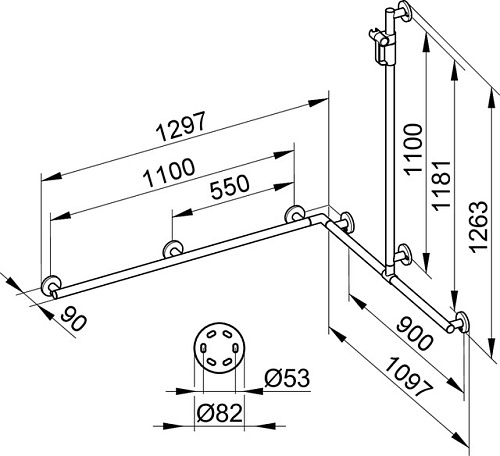 Поручень Keuco 34915011911 Plan Care вдоль стены и штанга для душа, хром