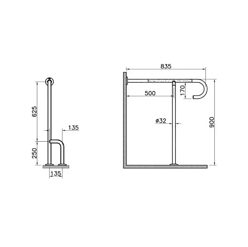 Поручень Vitra A44469 Arkitekta опорный 85 см, под углом 90°, хром
