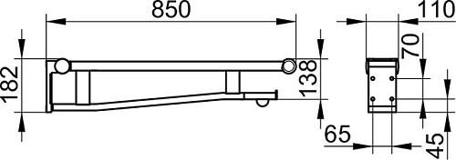 Исполнение справа. Подходит для: Geberit: 115.867.00.1, 115.869.00.1, 115.897.00.1, 115.898.00.1, Grohe: 38 759 SD0, Sanit: 03.082.00..0000, 03.582.00..0000, Tece: 9.240.354, 9.240.355, Viega: 786 038. Рукоятка откидывается наверх. Исполнение с огр. хода, поверхность контакта обшита пластиком, со съемным держателем туалетной бумаги.