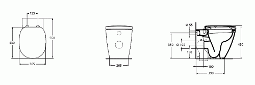 CONNECT Напольный пристенный унитаз-соло (чаша), горизонтальный выпуск, с крепежом TT0257919. Дополнительно заказывается сидение и крышка E712701 или E712801.