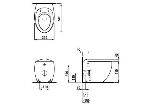 Унитаз Laufen Alessi Алесси 2197.1 напольный. С вертикальным смыванием. Установка вплотную к стене, скрытый горизонтальный слив, медленно опускающееся сиденье с крышкой 8.9297.1, с покрытием WonderGliss. , Тип по установке: напольный , Глубина, мм: 585 Ширина, мм: 390 Высота, мм: 415 , Цвет: белый