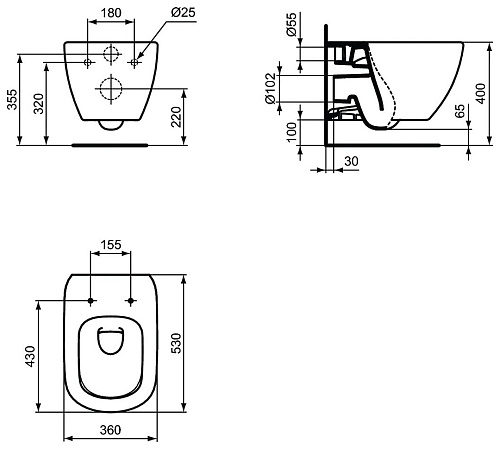 Комплект 2 в 1 Ideal Standard V0004D Tesi: унитаз подвесной + сиденье с микролифтом, белый купить по доступной цене