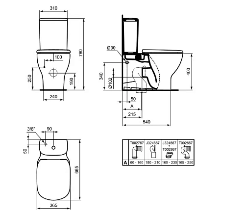 Горизонтальный (универсальный) выпуск, глубокий смыв.