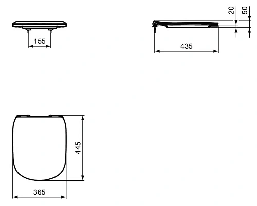 Комплект 3 в 1 Ideal Standard V0005D Tesi AquaBlade®: напольный/пристенный унитаз с бачком + тонкая крышка, белый