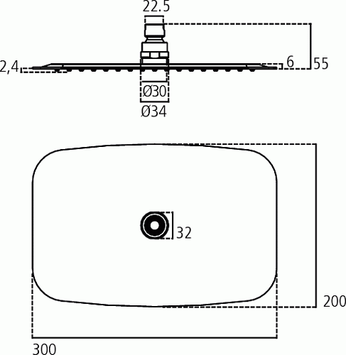 IDEALRAIN LUXE Прямоугольный верхний душ 200х300 мм, ультратонкий дизайн, 1-функциональный, ограничение потока 12 л/мин. легкоочищаемый (резиновые форсунки), полированная нержавеющая сталь.