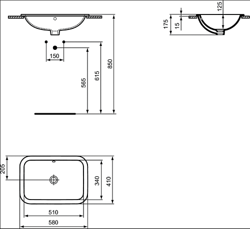 Раковина Ideal Standard E505901 Connect встраиваемая на столешницу 60х41 см, без отверстия под смеситель, Euro White (евробелый)