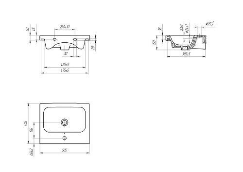Прямоугольная мебельная раковина COLOUR с отверстием под смеситель, размер раковины 50 см.