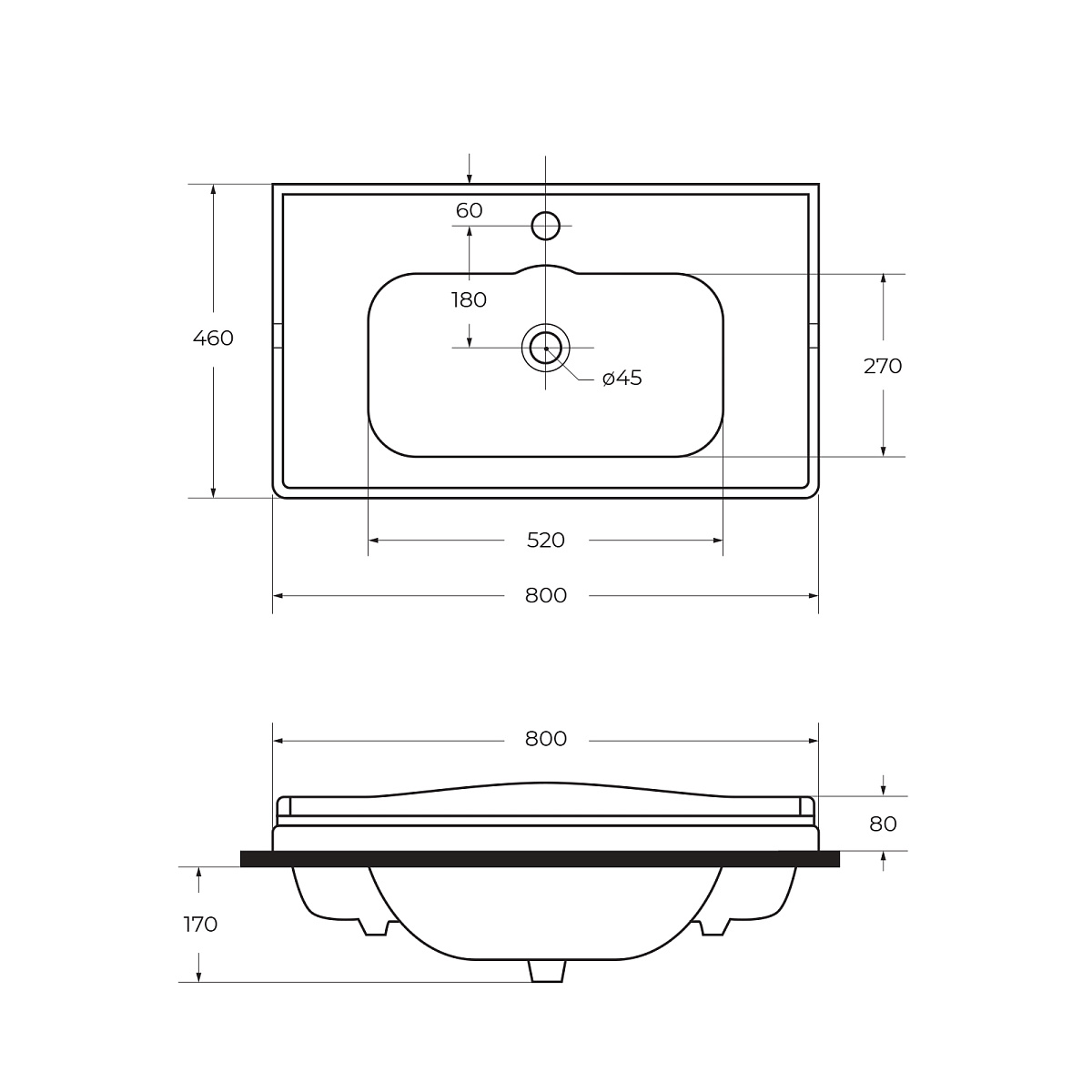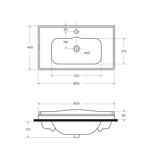 Раковина керамическая 80 см, CZR-ELT-80-LVB