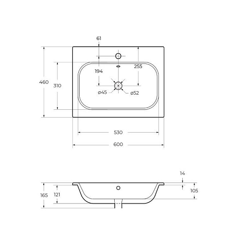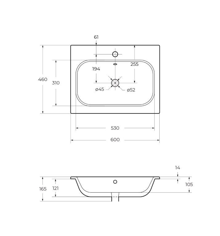 Раковина керамическая 60 см, CZR-NAT-60-LVB